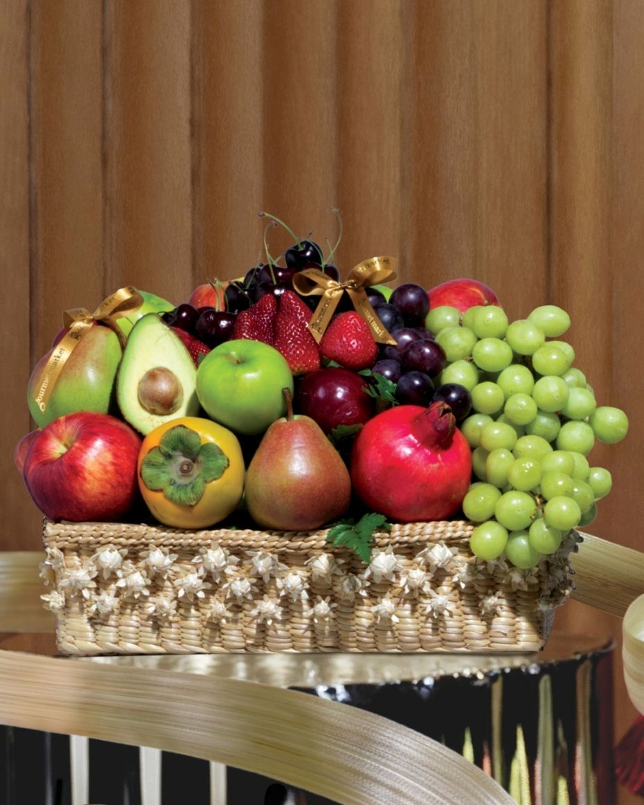 นอกจากกระเช้ารูปม้า ยังมีกระเช้าผลไม้ที่เป็นชามเซรามิกที่คุณสาวินชอบมากที่สุด “ย้อนไปตอนเด็ก ช่วงปีใหม่เป็นช่วงเวลาที่ได้กินของดี ๆ ของอร่อยในภาชนะที่คุ้นตา จึงนำมาเป็นแรงบันดาลใจสื่อถึงการรับประทานอาหารร่วมกับครอบครัว ยิ่งทางกูร์เมต์ มาร์เก็ต นำมาเป็นกระเช้าผลไม้ ยิ่งทําให้นึกไปถึงภาพในตอนนั้นได้ชัดเจนขึ้น ส่วนตัวเป็นลูกชาวนาชาวไร่ ที่มักจะปอกผลไม้ใส่ไว้ในชาม เมื่อพูดถึงช่วงเทศกาล เราปฏิเสธเรื่องการกินเลี้ยงไม่ได้ เป็นภาพจำที่เห็นแล้วรู้สึกถึงบรรยากาศที่คุ้นชินกับการได้กินข้าวร่วมกัน เพราะฉะนั้นภาชนะอันเดียวมันค่อนข้างให้ความรู้สึกกับเรามากในเรื่องการมีความสุขในช่วงสิ้นปี” คุณสาวินกล่าว