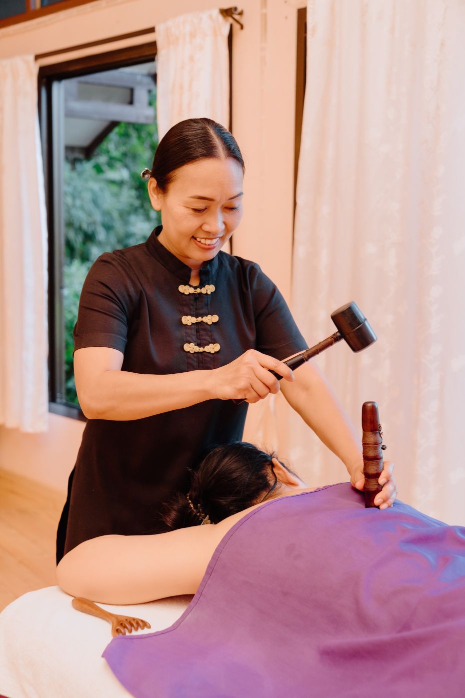 พบกับศาสตร์การบำบัดเฉพาะบุคคลอันเป็นเอกลักษณ์ ที่จะช่วยปรับและฟื้นฟูสมดุลร่างกาย อาทิ ศาสตร์การนวดหน้าท้องเพื่อผ่อนคลาย (Emotional Release Massage) หรือที่เรียกว่า ชิ เน ซัง (Chi Nei Tsang) ซึ่งจะมุ่งเน้นการดูแลฟื้นฟูการทำงานของระบบย่อยอาหาร ช่วยคลายความตึงเครียด และลดอาการปวดหลัง, การนวดบำบัดกล้ามเนื้อเชิงลึก (Alignment Massage) หรือที่คนไทยเรียกว่านวดตอกเส้น ศาสตร์การนวดที่ผสานเทคนิคการคลายกล้ามเนื้อในระดับลึกเข้ากับศาสตร์การกระตุ้นพลังงานโดยใช้แท่งไม้และค้อนไม้นวดตามจุดต่าง ๆ เพื่อให้แรงนวดลงลึกตามแนวกล้ามเนื้อและโครงสร้างของร่างกายเพื่อผ่อนคลายความเมื่อยล้าที่สะสม อีกทั้งยังช่วยปรับสภาวะความสมดุลของร่างกายและอารมณ์, การฟื้นฟูพลังงานร่างกาย (Energy Alignment) อีกหนึ่งการบำบัดเพื่อการฟื้นฟูพลังงานของร่างกาย ด้วยการปรับสมดุลจักระ (Chakras) ให้สอดประสานกันกับพลังงานภายในร่างกาย และยังช่วยผ่อนคลายความเครียด ลดความวิตกกังวล และปรับสมดุลด้านจิตใจ, ศาสตร์พลังงานบำบัด (Reiki Healing) ศาสตร์การบำบัดด้วยพลังงานเพื่อผ่อนคลายและฟื้นฟูดูแลด้านอารมณ์และจิตใจ ช่วยลดความเครียด และเสริมสร้างความสมดุลของร่างกายในทุกมิติ