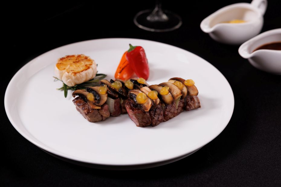 ห้องอาหาร ไฟร์เพลส กริลล์ แอนด์ บาร์ คัดสรรแต่เนื้อวากิวคุณภาพดี มารังสรรค์ออกมาเป็นอาหารจานพิเศษ ไม่ว่าจะเป็นเนื้อวากิวสันนอกส่วนสั้นจากฟาร์มมายูรา สเตชั่น ที่มีไขมันแทรกระดับ 8 ถึง 9 และเนื้อวากิวส่วนใบพายจากฟาร์มมายูรา สเตชั่น ที่มีไขมันแทรกระดับ 9+ ย่างให้สุกตามความชอบ ให้บริการกับซอสที่มีตัวเลือกหลากหลายชนิด อาทิ เบอร์เนส (Béarnaise) ชิมิชูรี (Chimichurri) วีลจูส์ (Veal jus) บาร์บีคิว (Barbeque) ไวน์แดง (Red wine) เห็ดพอร์ชินี (Porcinijus) เนยคาเฟ่เดอปารีส (Café de Paris butter) สูตรต้นตำรับ หรือน้ำจิ้มแจ่วรสจัดจ้าน นอกจากนี้ยังมีเนื้อวากิวสันในส่วนล่างจากฟาร์มมายูรา สเตชั่น เสียบไม้ที่มีไขมันแทรกระดับ 9+ ให้บริการกับเห็ดยักษ์พอร์โทเบลโล (Portobello mushroom) และเจลส้มยูซุ (Yuzu gel) รสเปรี้ยวสดชื่น เพิ่มมิติให้รสชาติมีความพิเศษยิ่งขึ้น