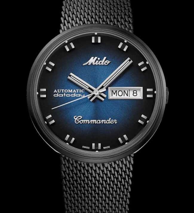 แน่นอนว่า Commanderในรุ่น Commander Shade จาก มิโด ยังคงเอกลักษณ์ของตัวเรือนทรงกลมที่ผลิตแบบชิ้นเดียวหรือ Monocoque เอาไว้ มาพร้อมกับเส้นสายและการขัดแต่งที่มีความประณีตส่วนหน้าปัดมาในสไตล์ทูโทนที่มีสีดำและสีน้ำเงินเป็นส่วนประกอบไล่เฉดสีอย่างสวยงามและมีเอกลักษณ์เฉพาะตัว สำหรับ Commander Blue Shade ให้ความสะดวกสบายเมื่อสวมใส่บนข้อมือด้วยการจับคู่กับสายสแตนเลสถัก Milanese ที่มีการขัดแต่งด้วยลวดลายซาติน มีการเคลือบ PVD สีดำและด้วยตัวเรือนที่มีทรงกลมนั้นทำให้ Commander Blue Shade ดูโดดเด่นและสะดุดตายามเมื่อถูกสวมใส่อยู่บนข้อมือภายใต้ตัวเรือนที่มีรูปทรงการออกแบบย้อนยุคและมีกลิ่นอายดั้งเดิมสิ่งที่อยู่ข้างในนั้นกลับแตกต่างด้วยกลไกอัตโนมัติรุ่นล่าสุด Caliber 80ให้ความเที่ยงตรงในการทำงาน อีกทั้งยังสามารถสำรองพลังงานสูงสุดถึง 80 ชั่วโมงและจากจุดมุ่งหมายในการยกย่องรูปทรงในสไตล์วินเทจของนาฬิการะดับตำนานอย่าง Commander การสร้างสรรค์ที่โดดเด่นในครั้งนี้จะสามารถดึงดูดความสนใจจากบรรดาคนที่ชื่นชอบนาฬิกาในสไตล์วินเทจและนาฬิกาที่มีรูปลักษณ์ที่อยู่เหนือกาลเวลาได้เป็นอย่างดี