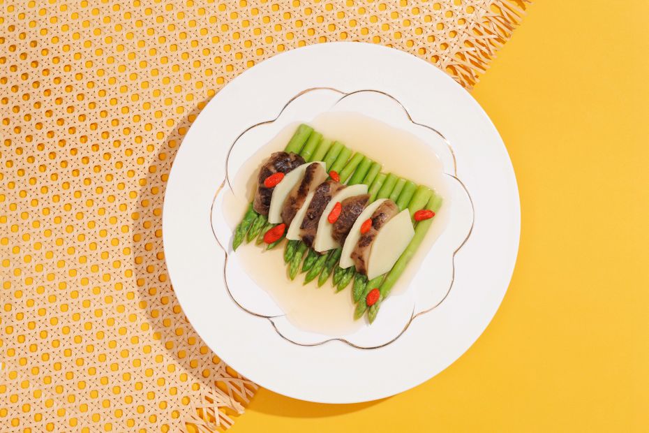 อาหารแนะนำ ได้แก่ ยำเต้าหู้พะโล้กับแตงกวาซอสพริก ซุปเยื่อไผ่และเห็ดหูหนูทองตุ๋นในลูกมะพร้าว หูหมูเจกับฮ่วยซัวสดผัดเต้าซี่ ฮ่วยซัวเป็นสมุนไพรจีนมีสรรพคุณช่วยกระตุ้นระบบย่อยอาหาร