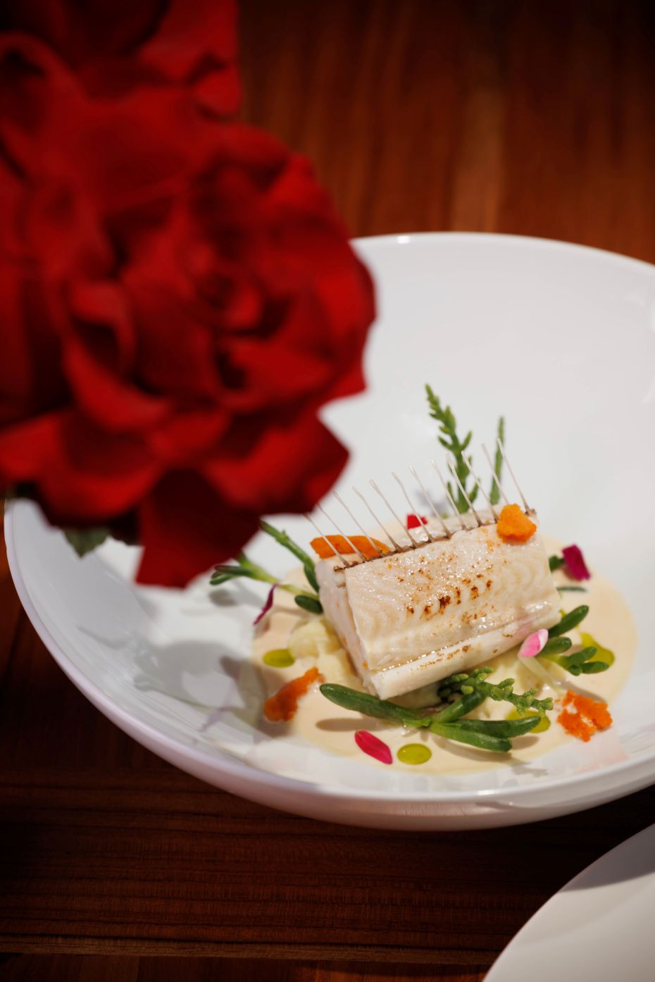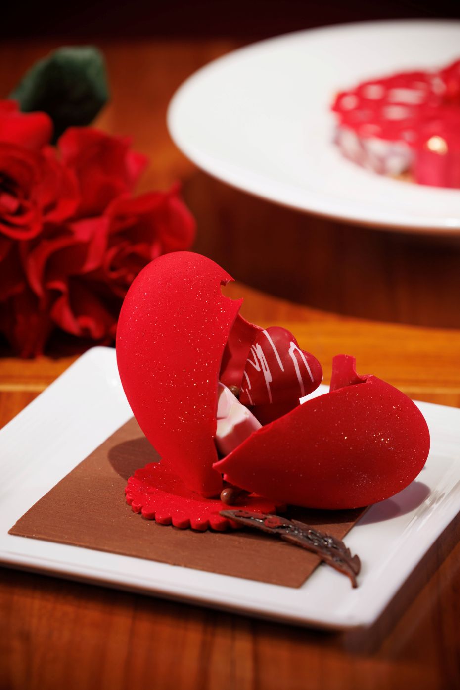 ส่วนขนมหวานให้บริการ สปันจ์เค้กช็อกโกแลตสอดไส้ดาร์กช็อกโกแลตครีมเนื้อเนียนนุ่ม และถั่วพีแคนกรุบกรอบ นอกจากนั้น ผู้เชี่ยวชาญด้านไวน์ของโรงแรม มร. เรมี ตอร์เรส (Remi Torres) ได้คัดสรรไวน์คุณภาพเยี่ยมจากหลากหลายประเทศมาจับคู่กับอาหารแต่ละจาน โดยพิจารณาทั้งรสชาติและกลิ่นของไวน์อย่างพิถีพิถัน เพื่อเพิ่มรสชาติและยกระดับประสบการณ์การรับประทานอาหารเติมเต็มค่ำคืนอันแสนโรแมนติก