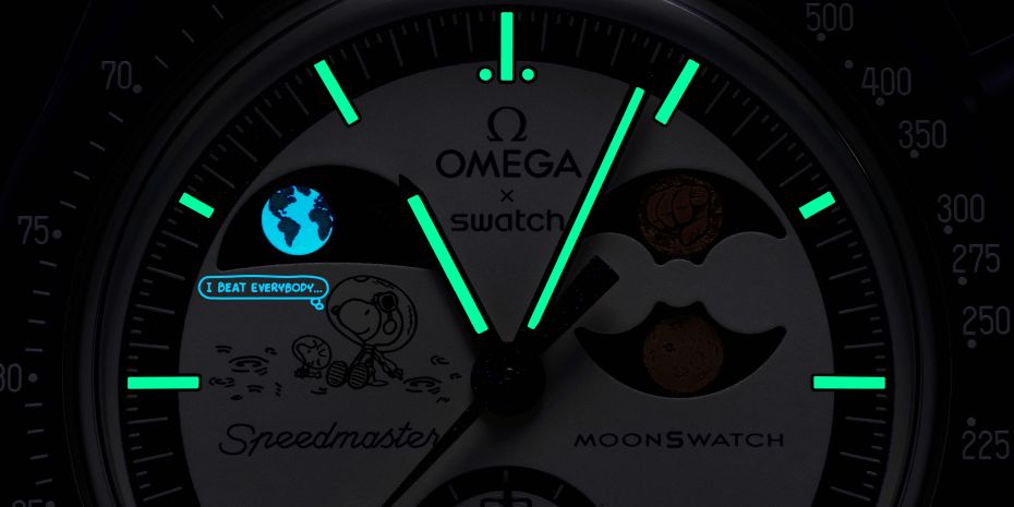 เรือนเวลาน้องใหม่นี้ จะถอดแบบดีไซน์ของนาฬิการุ่นพี่โดยมีรูปแบบหน้าปัดแห่งหมู่ดาวแบบเดียวกัน พร้อมด้วยนวัตกรรมฟังก์ชันบอกดิถีของโลกล่าสุดของ Swatch ฟังก์ชันบอกดิถีของดวงจันทร์ที่เคลือบ Moonshine™ Gold ของ OMEGA และ รูปภาพจากจักรวาล Snoopy