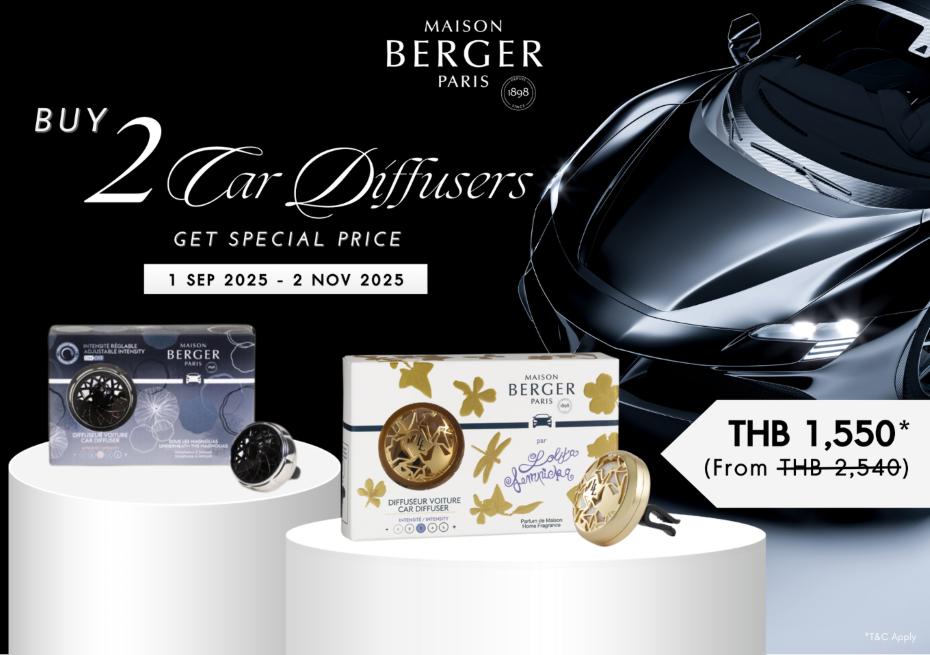 เพื่อเติมเต็มความพิเศษให้กับลูกค้า Maison Berger Paris จัดโปรโมชัน ตั้งแต่วันนี้ – 2 พฤศจิกายน 2568 ซื้อ Car Set 2 ชิ้น ในราคาพิเศษเพียง 1,550 บาท (จากปกติ 2,540 บาท)
