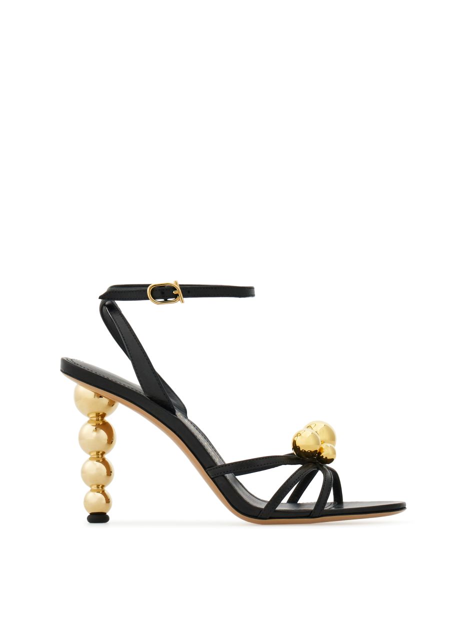 ปิดท้ายด้วยรองเท้าแตะส้นสูงดีไซน์หรู ที่นำองค์ประกอบทรงกลมมาประยุกต์ ทั้งในส่วนของส้นซึ่งเรียงซ้อนกันเป็นทรงกลมหลายชั้น และยังใช้เป็นดีเทลประดับบนด้านบนของรองเท้า