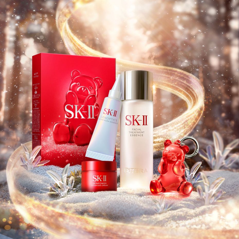 ฉลองเทศกาลแห่งความสุข ด้วย SK-II Festive Best Collection Kit รุ่นลิมิเต็ด อิดิชัน ชุดของขวัญสุดหรูที่มาพร้อมกับถุงของขวัญดีไซน์พิเศษ พวงกุญแจ Pitekuma Bear Charm พร้อมเซ็ตผลิตภัณฑ์บำรุงผิวแบบครบสูตร ได้แก่ Facial Treatment Essence สุดไอคอนิกของแบรนด์, GenOptics InfinitAura Essence สูตรใหม่, และครีมบำรุง SKIN POWER Advanced Cream ซึ่งแต่ละชิ้น ถูกออกแบบมาเพื่อมอบผิวที่ดูกระจ่างใสเป็นของขวัญที่ดีที่สุดให้กับทุกคน
