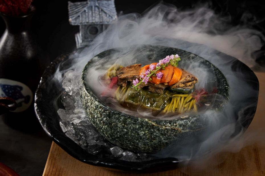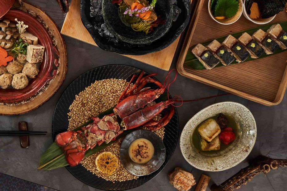 เริ่มที่ Saba Oshizushi ซูชิกดหน้าปลาซาบะ นำข้าวปรุงรสและซาบะหมักน้ำส้มสายชูมาจัดเรียงและกดแน่นด้วยแม่พิมพ์ไม้แบบดั้งเดิม ใครที่ชอบเส้นห้ามพลาด Matcha Soba with Awabi and Uni เส้นโซบะชาเขียวจับคู่จับคู่กับหอยเป๋าฮื้อและอูนิรับประทานพร้อมซอสรสกลมกล่อม หากชอบซุปร้อน ๆ ต้องลอง Saikyo Miso Hot Pot with Chicken Tsukune หม้อร้อนที่บำรุงทั้งกายและใจ ปรุงรสด้วยมิโสะไซเคียว หรือมิโสะขาวรสหวานตามธรรมชาติ กับน้ำซุปดาชิและงาบดเสิร์ฟร้อน ๆ พร้อมไก่บดปั้นก้อนเนื้อนุ่มและผักสด นอกจากนี้ เชฟอัลวินยังนำมิโสะไซเคียว มาเพิ่มความหอมหวานและสีสันให้กับเมนู Saikyo Miso Grilled Lobster กุ้งล็อบสเตอร์ย่างสุดหรู ซึ่งเป็นอีกหนึ่งจานพิเศษ ปิดท้ายด้วยเมนูของหวานอย่าง Matcha Zenzai ซุปถั่วแดงญี่ปุ่น ที่ความหวานมันของถั่วแดงบด เข้ากันได้ดีกับชาเขียวมัทฉะและโมจิเนื้อนุ่ม